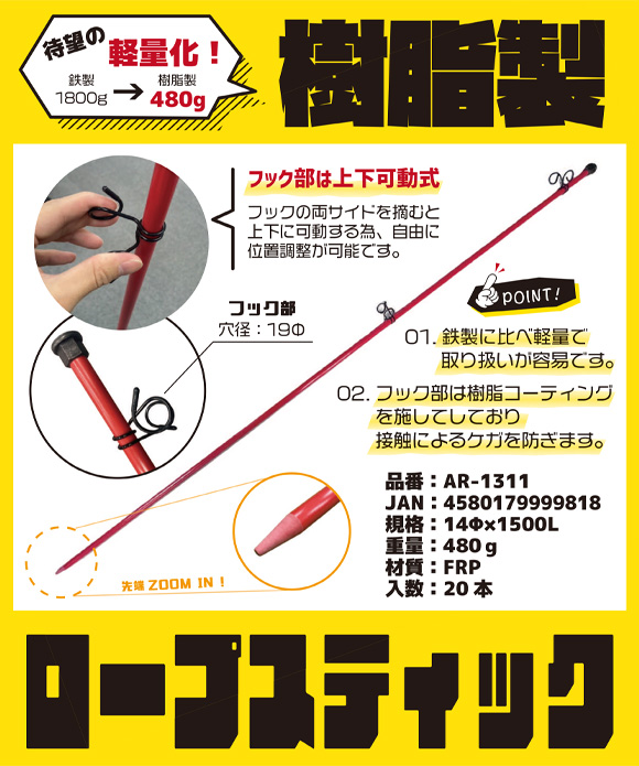 | SAR0695 | 14φ×1,500L | FRP | 480g | 910 |