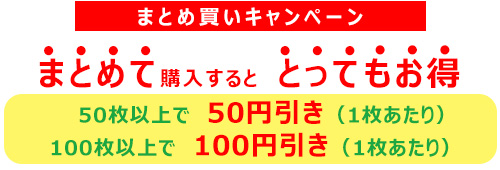 - 50枚以上のご購入で50円引き、100枚以上のご購入で100円引きになります。