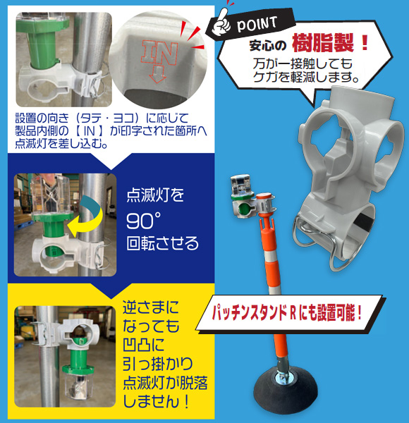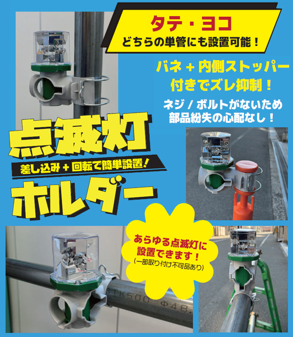 • ■あらゆる点滅灯を48.6φ単管に簡単に設置できます!(一部取付不可品あり)